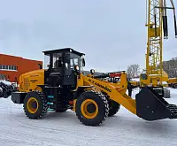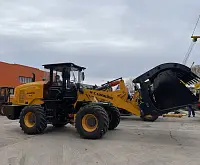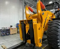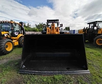 крупный ковш (его объем может варьироваться от 0,5 м³ до 25 м³), который можно заменить на другой тип навесного оборудования (вилочные захваты, крюки, щетки, отвал для уборки снега и т.п.).
